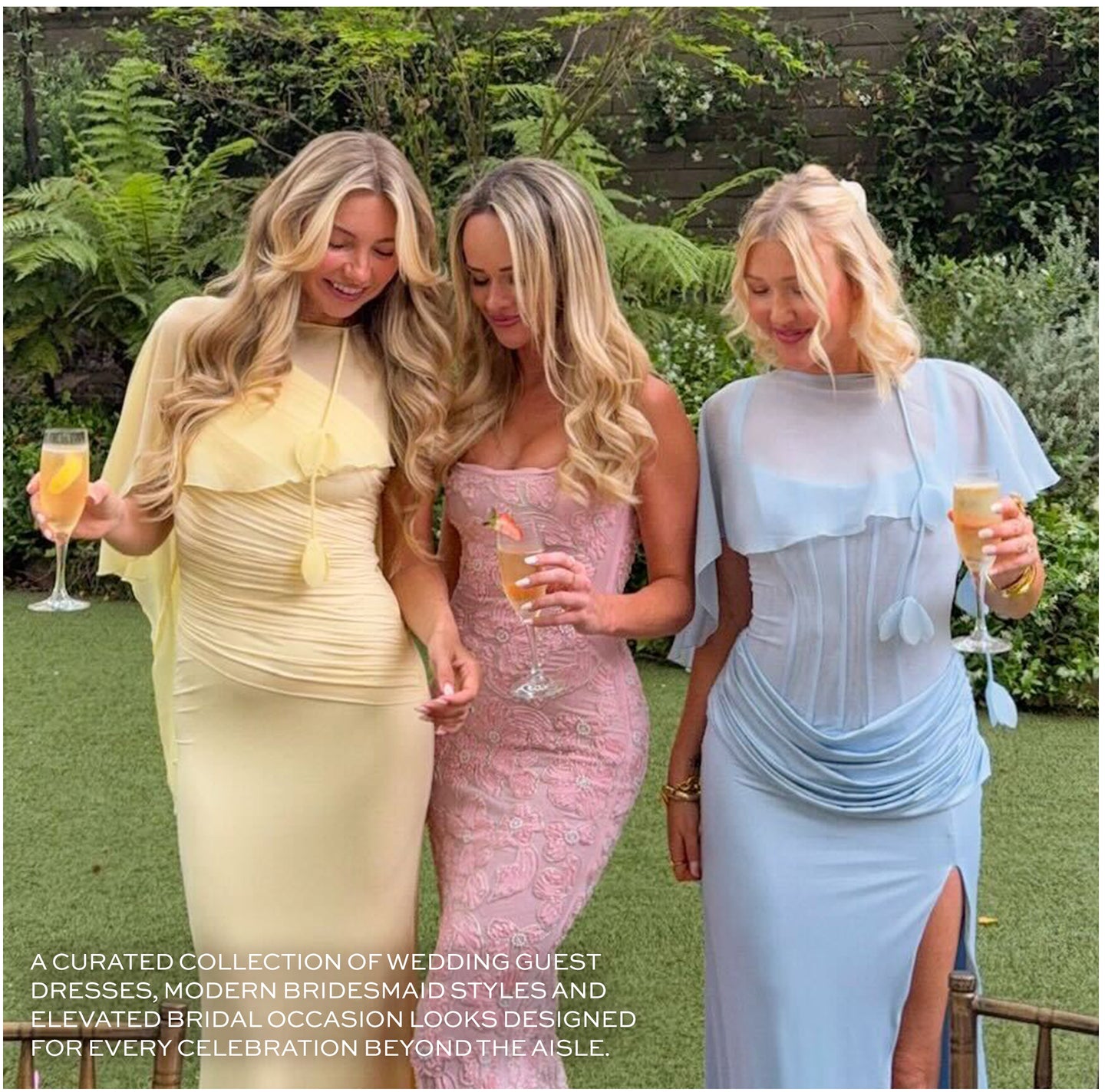 Step into the season of celebrations with occasionwear designed for everyone on the guest list. From wedding guest to bridesmaid to bride, this curated edit brings together statement pieces made for unforgettable moments. Discover silhouettes that sculpt, drape, and move effortlessly - from flowing gowns for sunlit ceremonies to elevated evening styles for candlelit receptions. Think elevated occasionwear with attitude: fluid skirts, structured bodices, delicate straps, and statement finishes that capture the light - and every eye in the room. Because every RSVP deserves a look worth remembering.