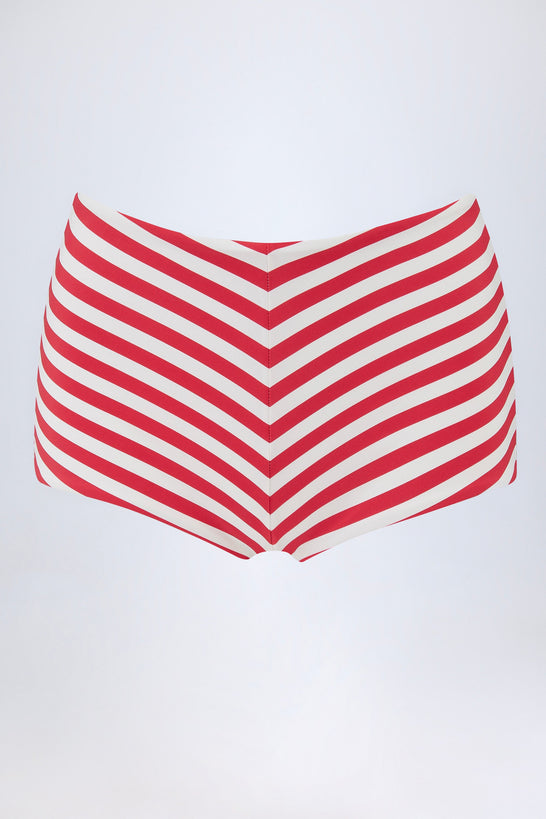 • Mid-Rise Hotpants in Cherry Red Stripe