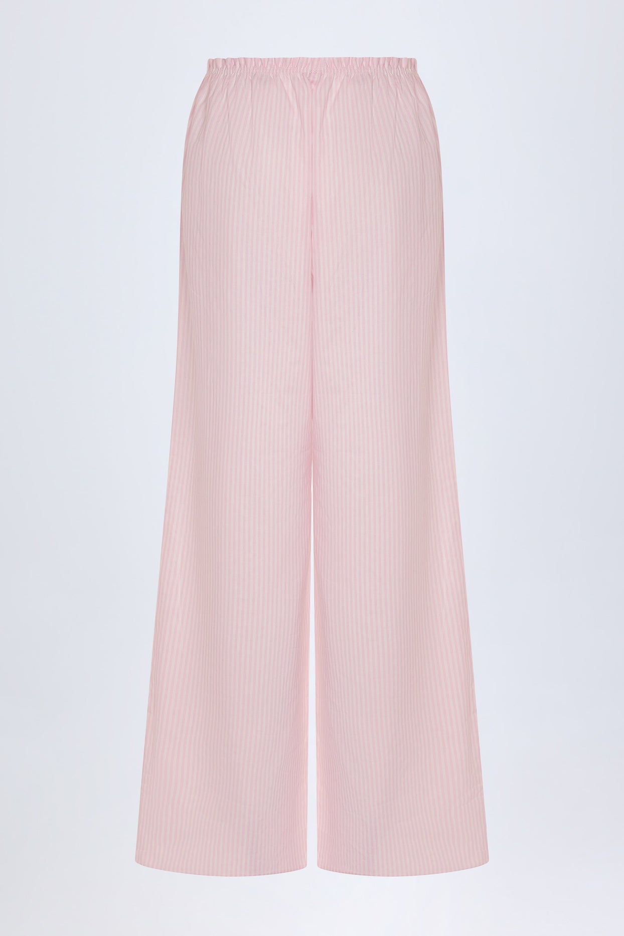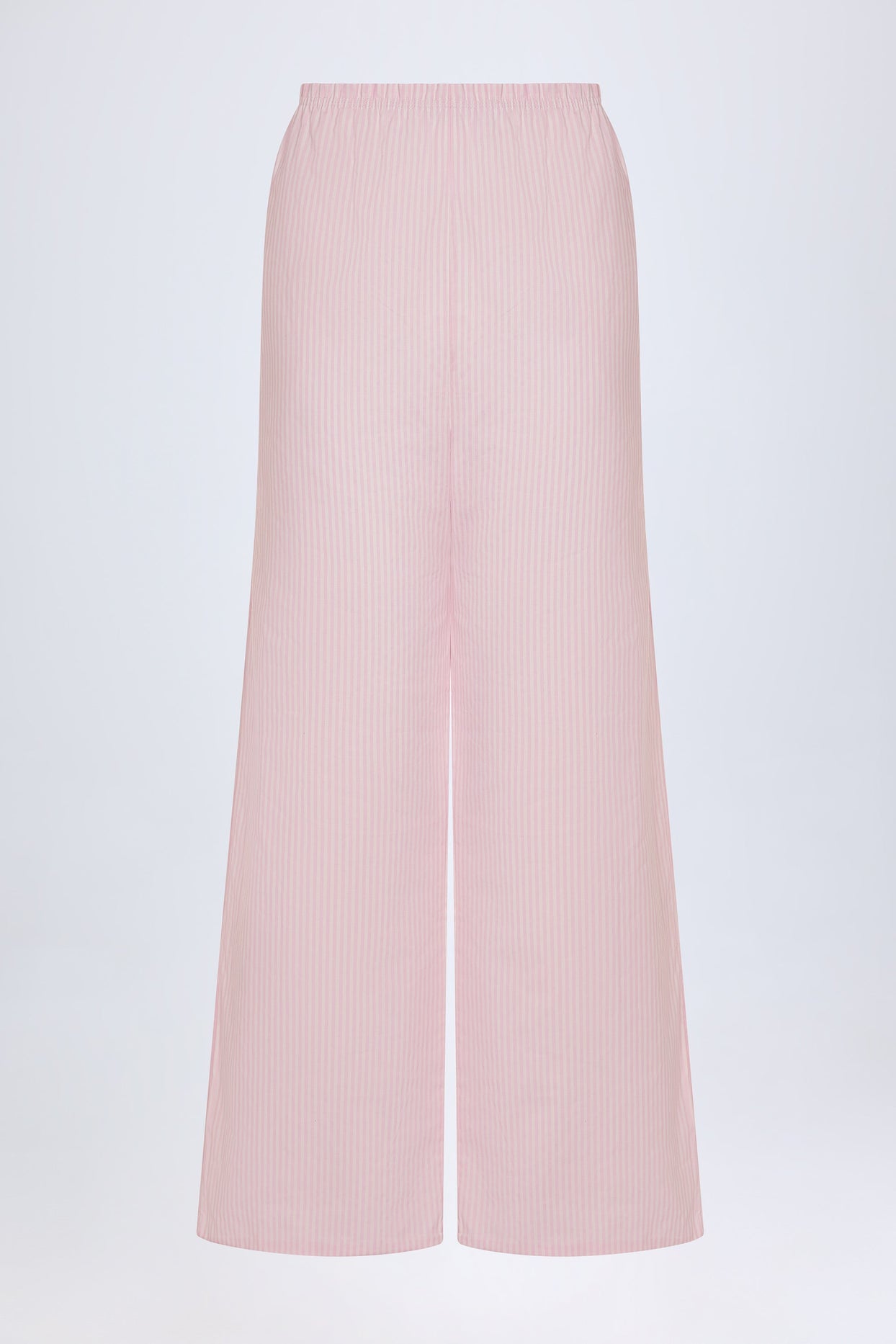 • Mid-Rise Wide-Leg Trousers in Pink & White Stripe