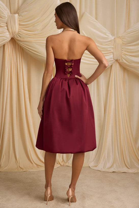 Convertible Bow-Detail Bubble Hem Midaxi Dress in Wine Red