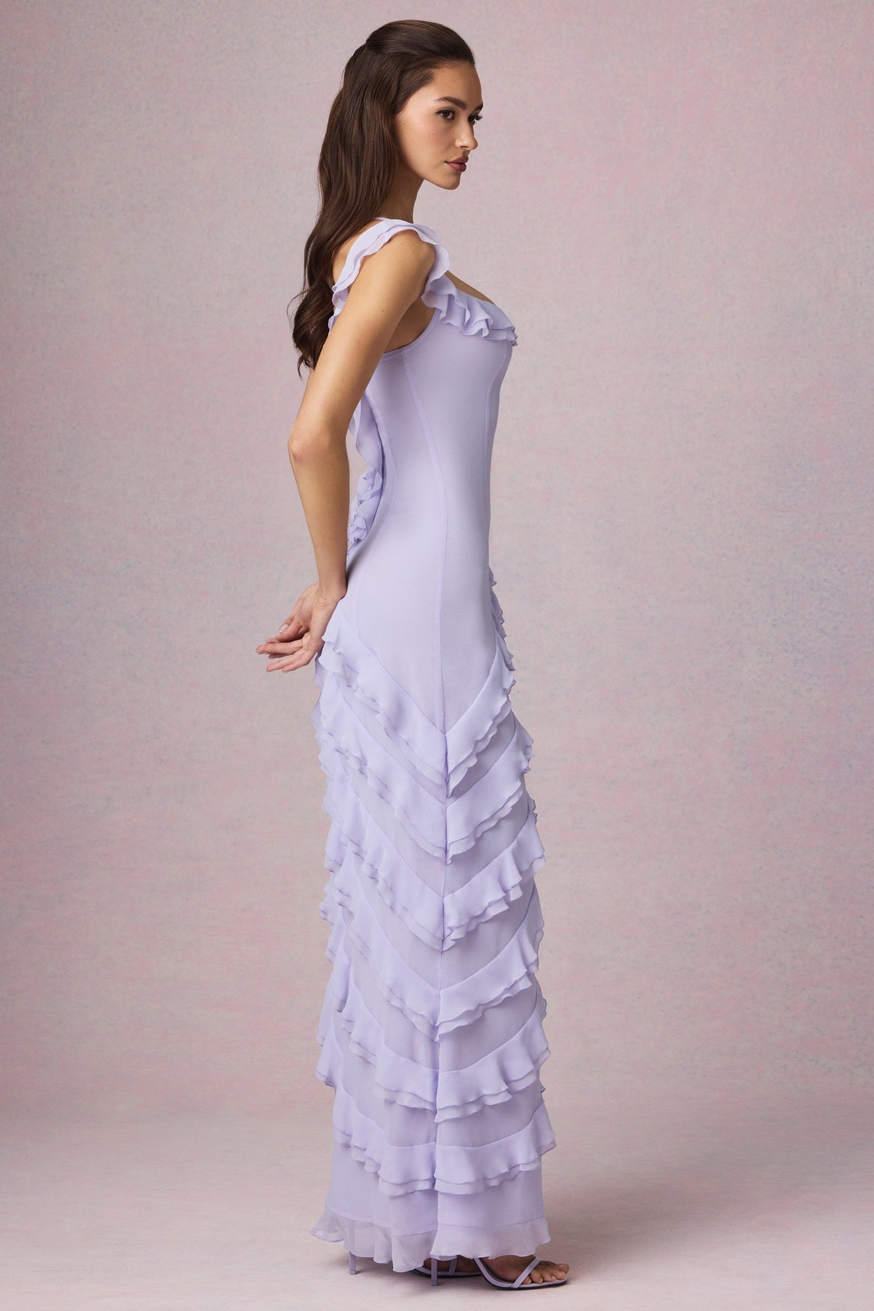 Asymmetric Ruffled Lace-Up Gown in Lilac