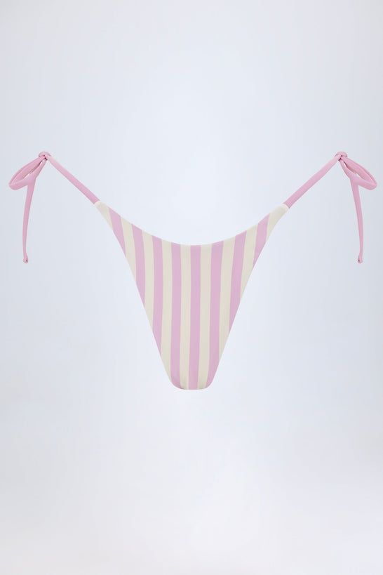 • Side-Tie Thong Bikini Bottoms in Mauve Stripe