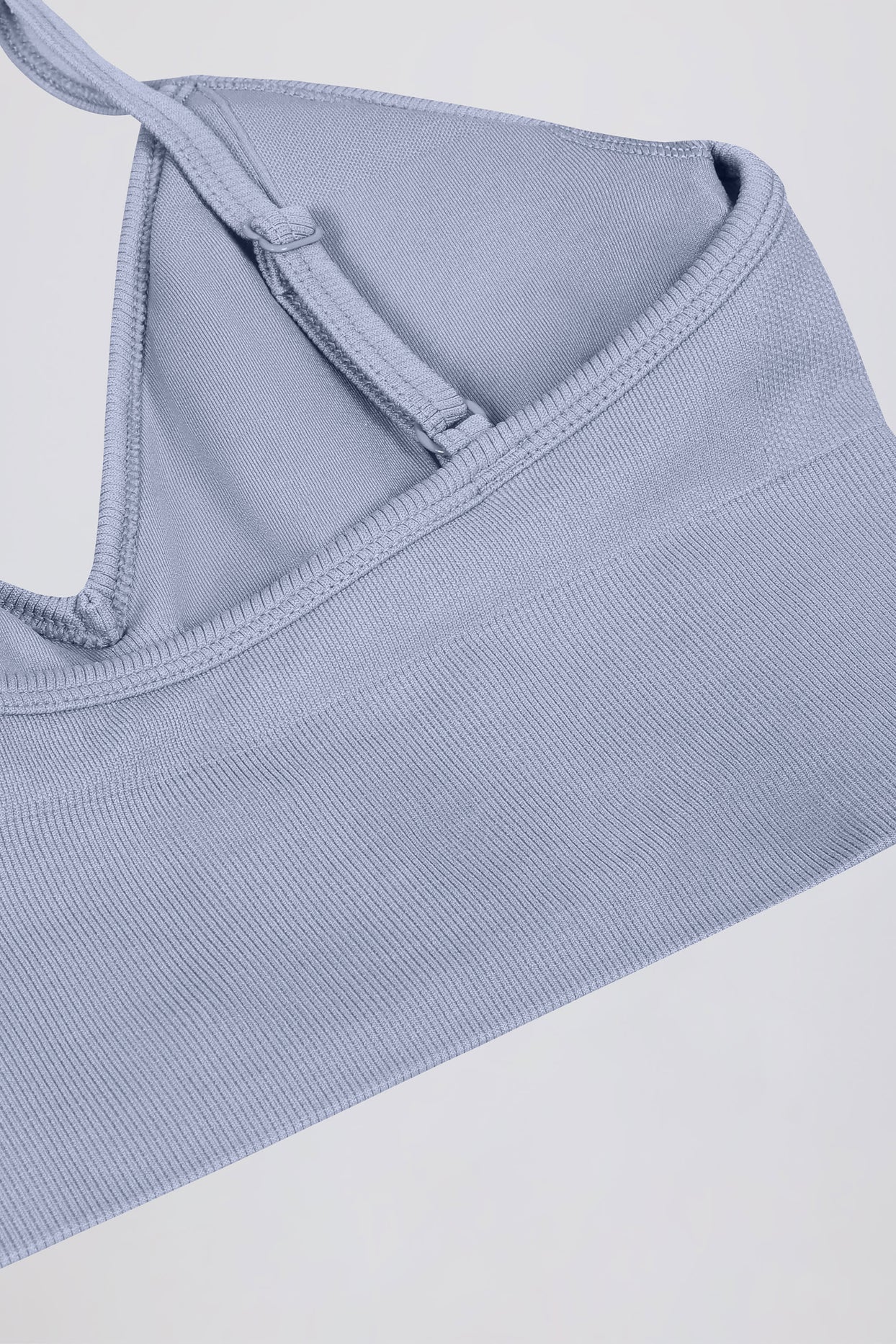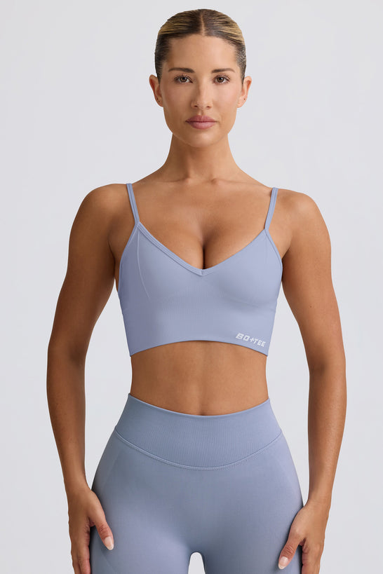 • Define Luxe V-Neck Sports Bra in Blue Grey