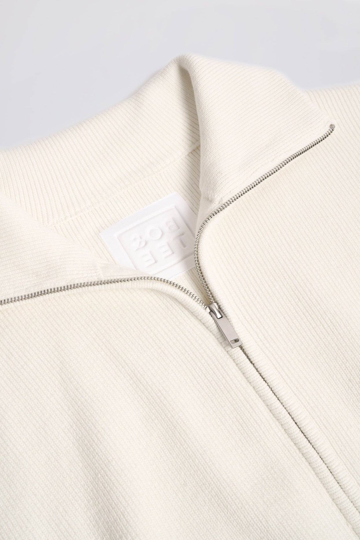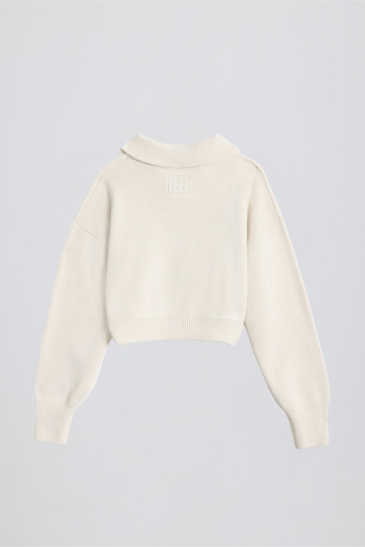 • Ribbed Knit Zip-Up Cropped Sweatshirt in Ivory