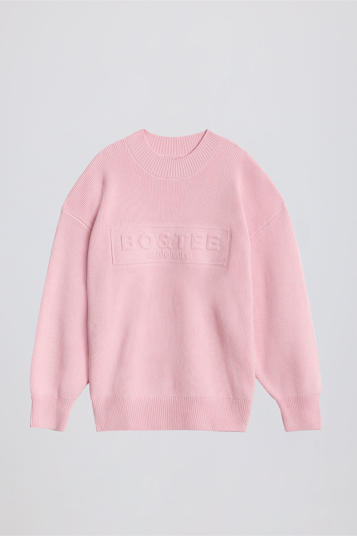 Ribbed-Knit Oversized Jumper in Pale Pink