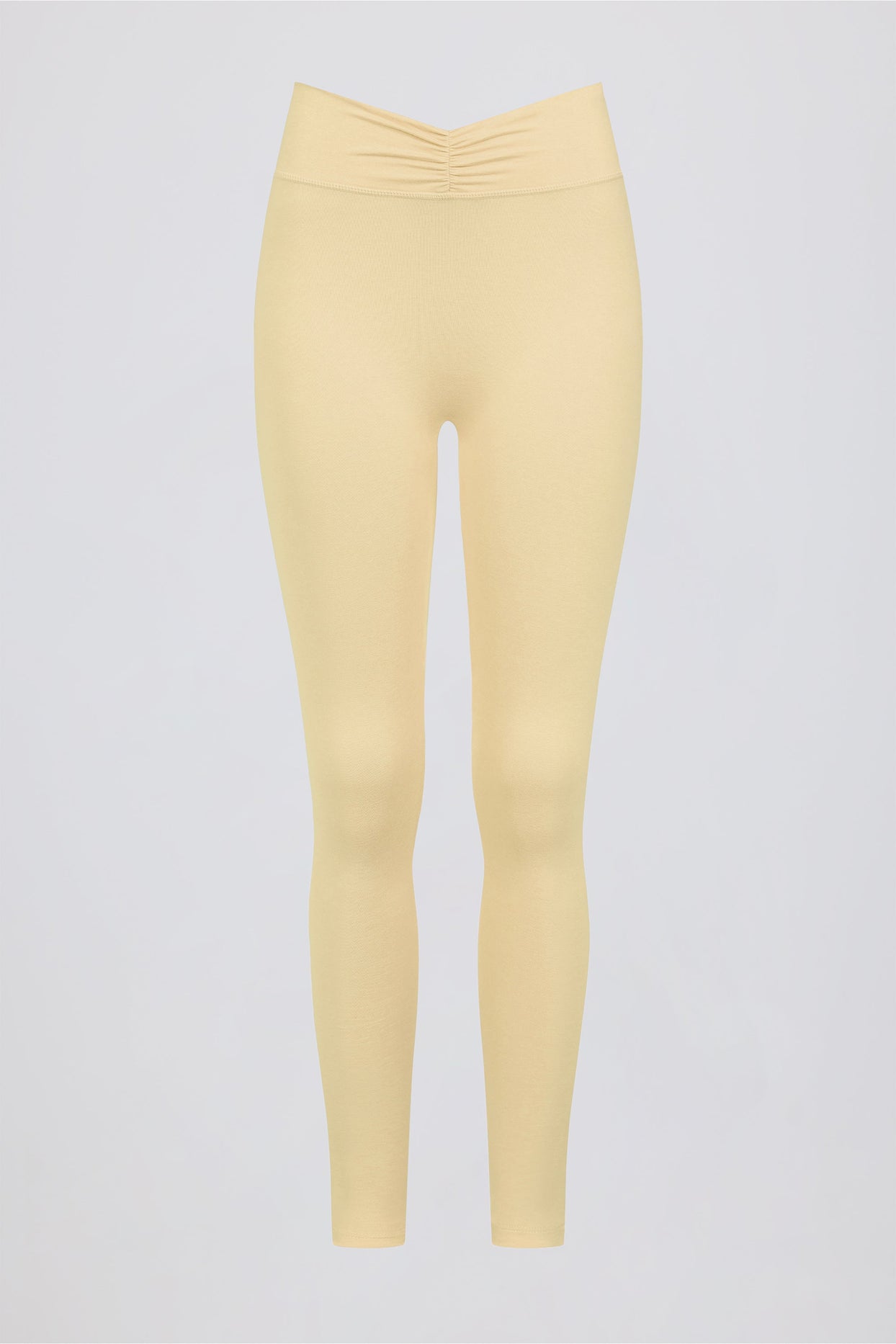 • Ruched Mid-Rise Leggings in Lemon Marl