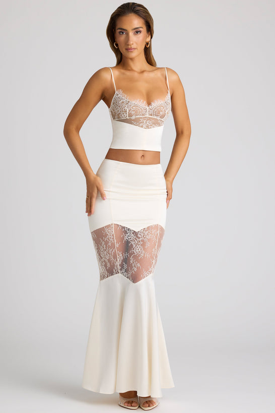 • Lace Panel Fishtail Gown Skirt in Ivory