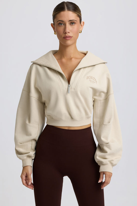 • Quarter-Zip Cropped Sweatshirt in Bone