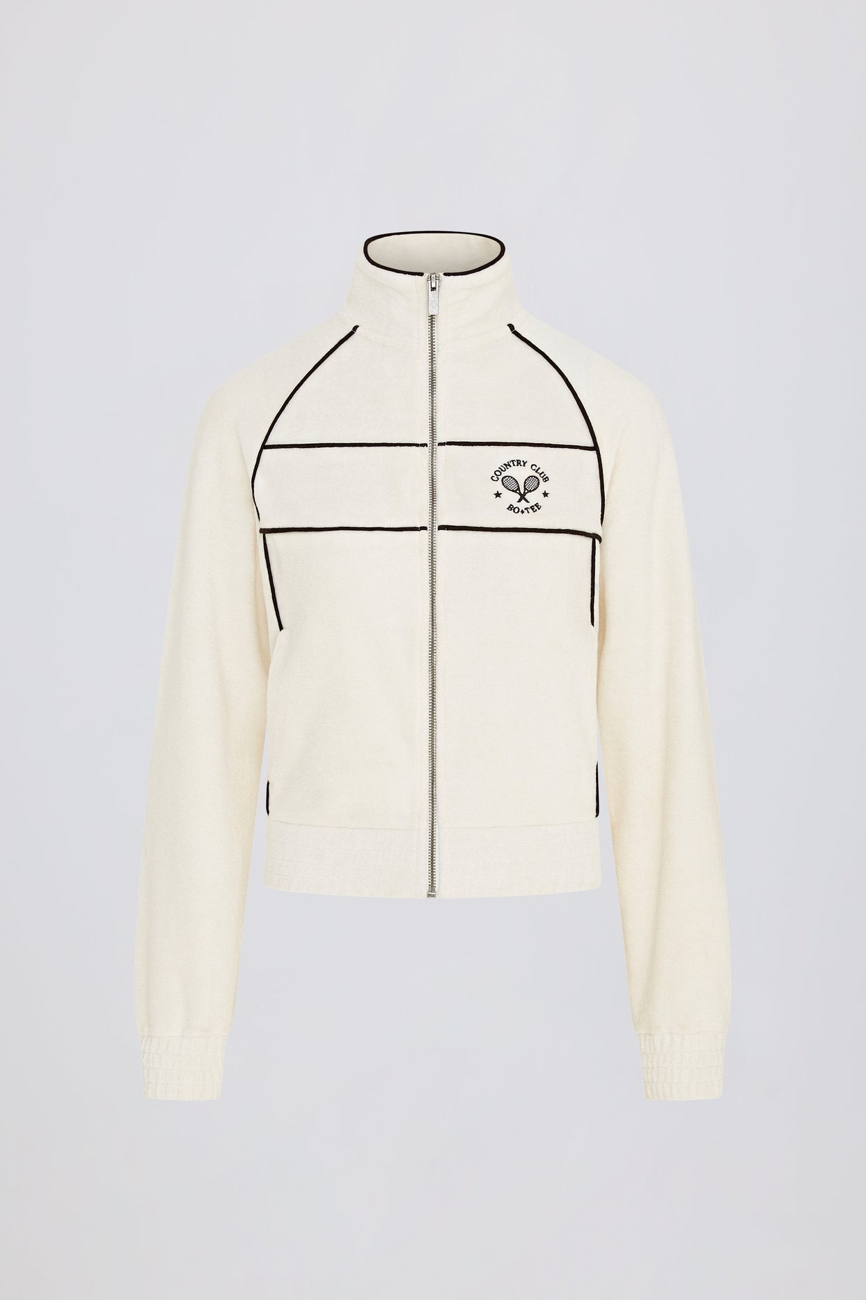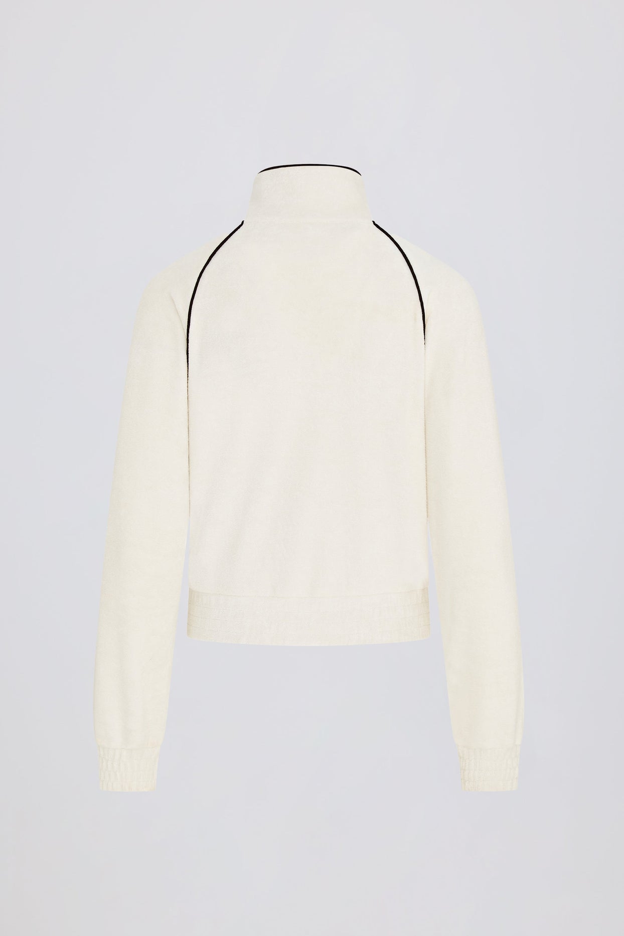 Terry Towelling Zip-Up Cropped Sweatshirt in Ivory