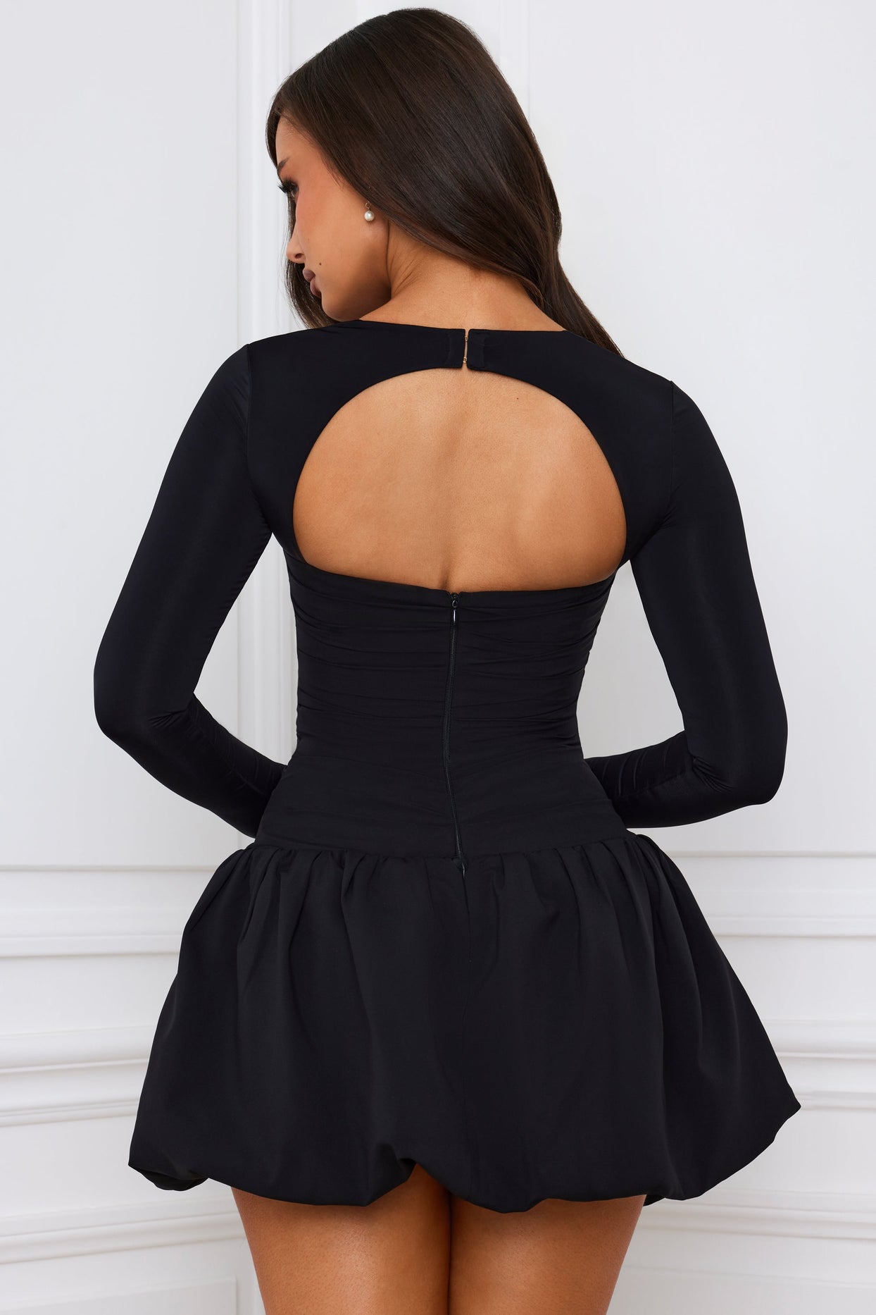 Long-Sleeve Bubble Hem Mini Dress in Black